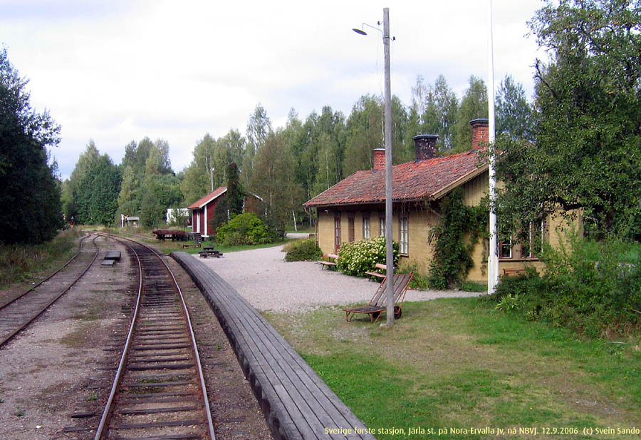 Järla stasjon ligger midt på museumsbanen Nora Bergslags Veteran Jernväg, og er Sveriges første stasjonsbygning, bygget 1854, altså to år før banen ble åpnet. Vårt tog besøkte banen på tilbaketuren til Oslo og bildet er tatt i den anledning, fra bakerste plattform da vi passerte stasjonen.