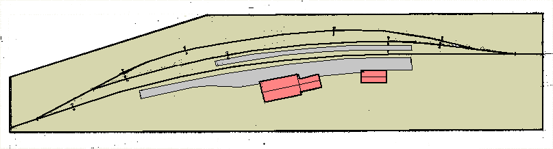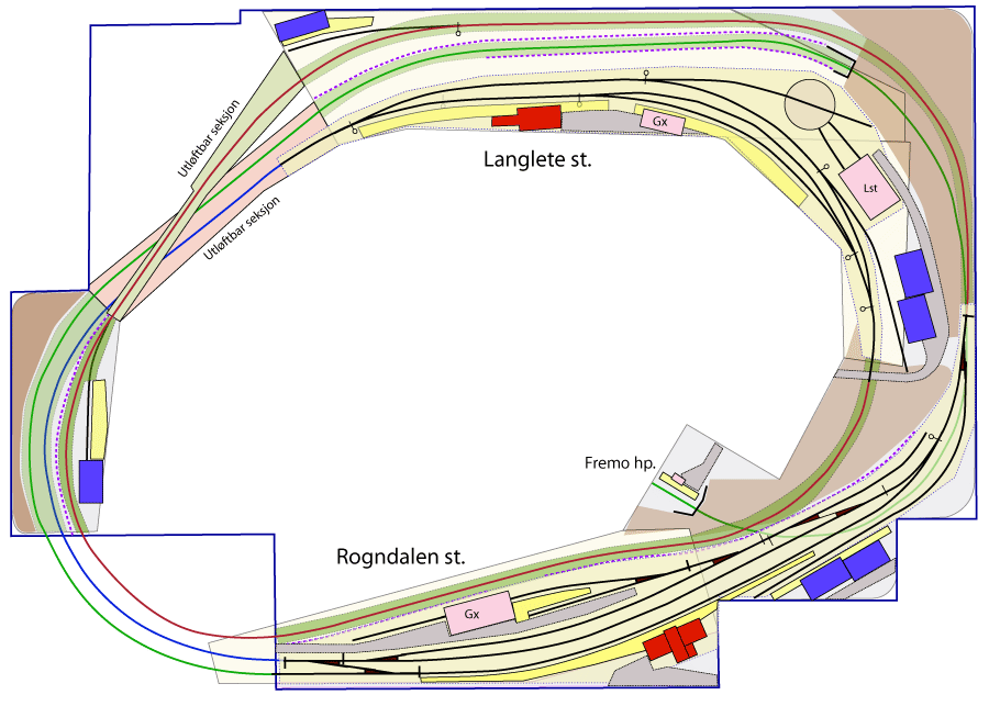 Støren-Hovinbanen. 6 seksjoner. Rundbane. Planlagt som to-etasjes anlegg.