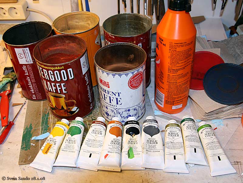Jeg blander ca 1 tesje med sort brekkfarge i en liter vann og bruker det i gipsen. Da blir den sånn passe grå.