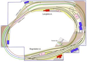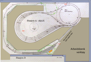 Støren-Hovinbanen. 6 seksjoner. Rundbane. Planlagt som to-etasjes anlegg.