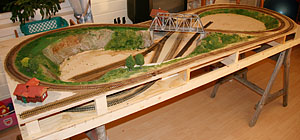 Dobbeltslynget rundbane med trekant-spor til endestasjon. Laget for barneklubben "Vepsebolet"