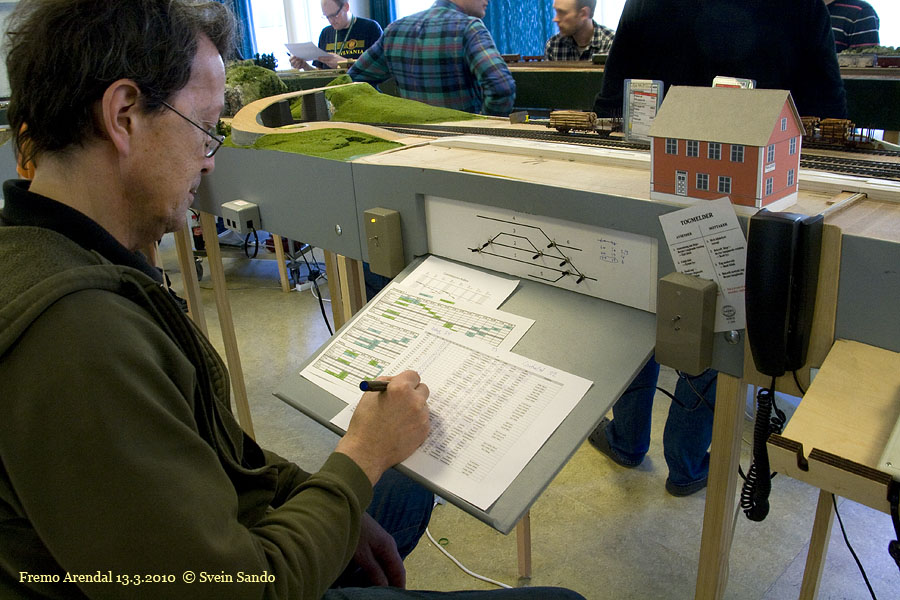 Trafikkspillet er hovedhensikten med et Fremo-treff. For da kjøres det tog etter ferdig oppsatte og planlagte ruten. Med en hurtigklokke (avbildet flere steder) gjennomløse døgnet atskillig raskere enn på virkelighetens jernbane.