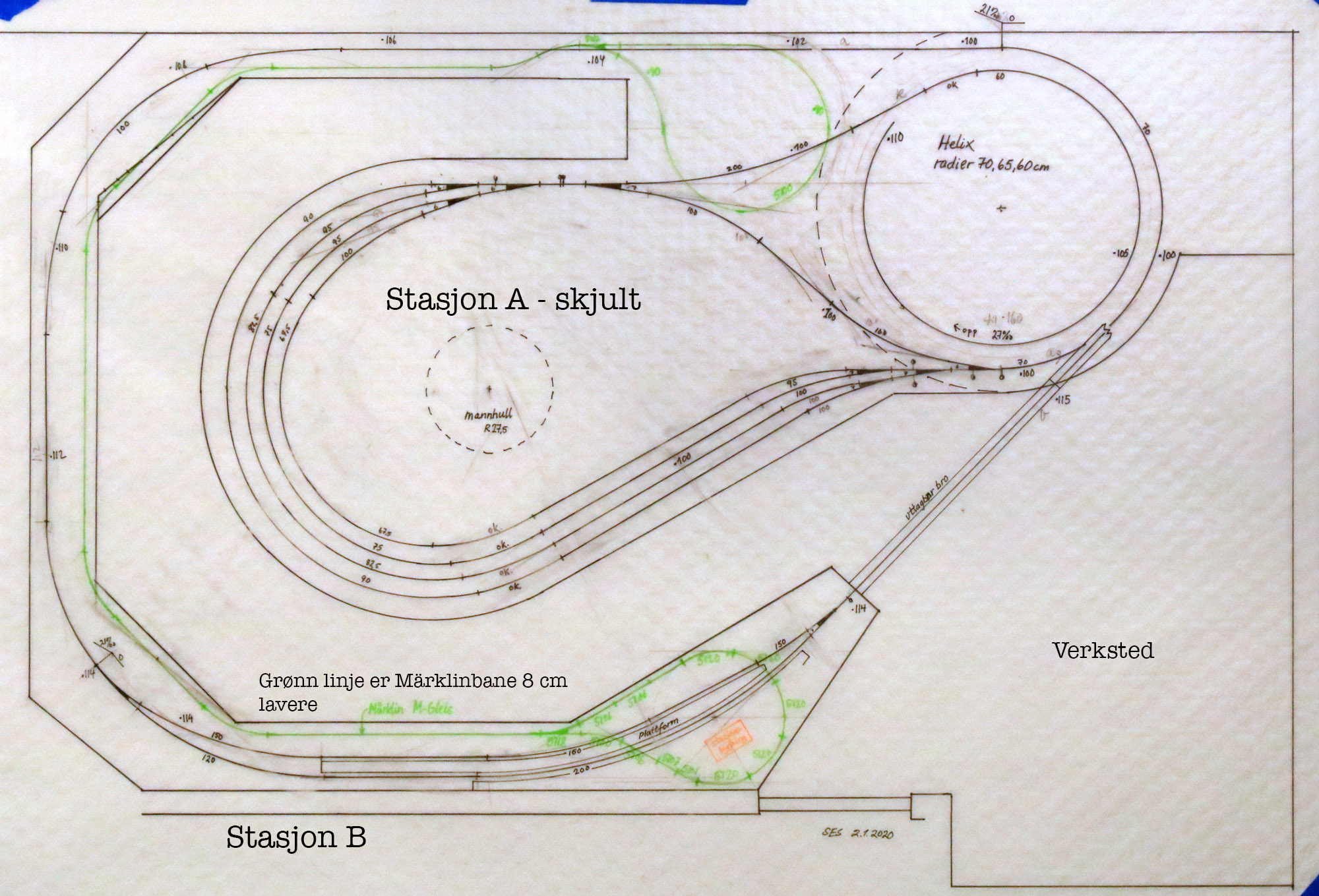 På nederste nivå er det lagt inn en Märklin-bane med tanke på yngre besøkende som kan få viltre seg litt med mitt gamle Märklin-utstyr. Dette vil bli beholdt så lenge jeg har barnebarn i alder for slikt.