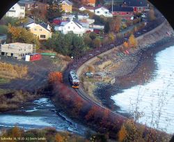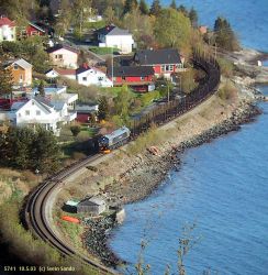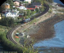 Neset nedenfor Smiskaret, blikk vestover 2003-06-29 Tog 5741, CD 66.406 Vist 14360 ganger |  Muruvik, bukt vest for Flatholmen 2003-09-06 Tog 5741, Di 8.712 Vist 14787 ganger |  Saksvikbukta, sett fra Ålia 2003-10-18 Tog 5741, CD 66 Vist 21973 ganger |  Være vest: I fjæra ved planovergangen omtrent 2004-06-12 Tog 5741, CD 66 Vist 17397 ganger |