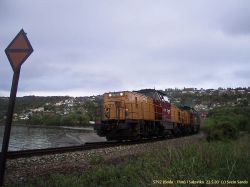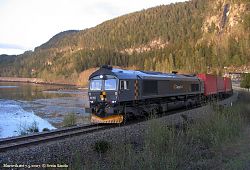 Hundhamaren, fra nes 2005-08-05 Tog 5792, CD 66 x 2 Vist 14426 ganger |  Ved bro over Sagelva bak Sandbakken tidl. skole 2005-08-15 Tog 5792, CD 66.401 Vist 14570 ganger |  Leangen stasjon 2006-05-19 Tog 5792, CD 66.405 Vist 16728 ganger |  Pynt nord for Grytbakkstranda 2006-05-26 Tog 5792, Containerekspressen fra Bodø under Aunvåttan, sett fra Ranheim Vist 12207 ganger |