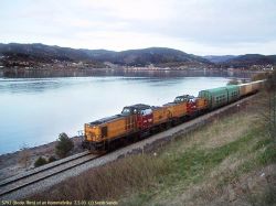 Saksvikbukta, sett fra Ålia 2003-07-17 Tog 5792, CD 66 Vist 23903 ganger |  Hundhamaren, fra nes 2004-05-12 Tog 5792, CD 66 Vist 19190 ganger |  Saksvikbukta, sett fra Ålia 2004-07-15 Tog 5792, CD 66 x 2 Sommerstid slås 5782 og 5792 sammen, og da trengs oftest to lok Vist 21455 ganger |  Malvikvn. 421, veidele vei ned mot jordene ved Malvik st 2004-07-22 Tog 5792, CD 66 x 2 Vist 16342 ganger |