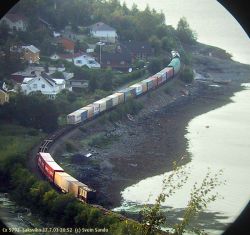 Hundhamaren, fra nes 2004-08-16 Tog 5792, CD 66 Vist 19255 ganger |  Hommelvik vest, Malvikvn. 1231 2004-08-20 Tog 5792, CD 66 Vist 18597 ganger |  Hommelvik vest, Malvikvn. 1231 2004-08-20 Tog 5792, CD 66 Vist 18597 ganger |  Storsand-Midtsand, v undergang til Intra 2005-06-02 Tog 5792, CD 66 Godstoget på vei ut fra Midtsandan st Vist 16163 ganger |